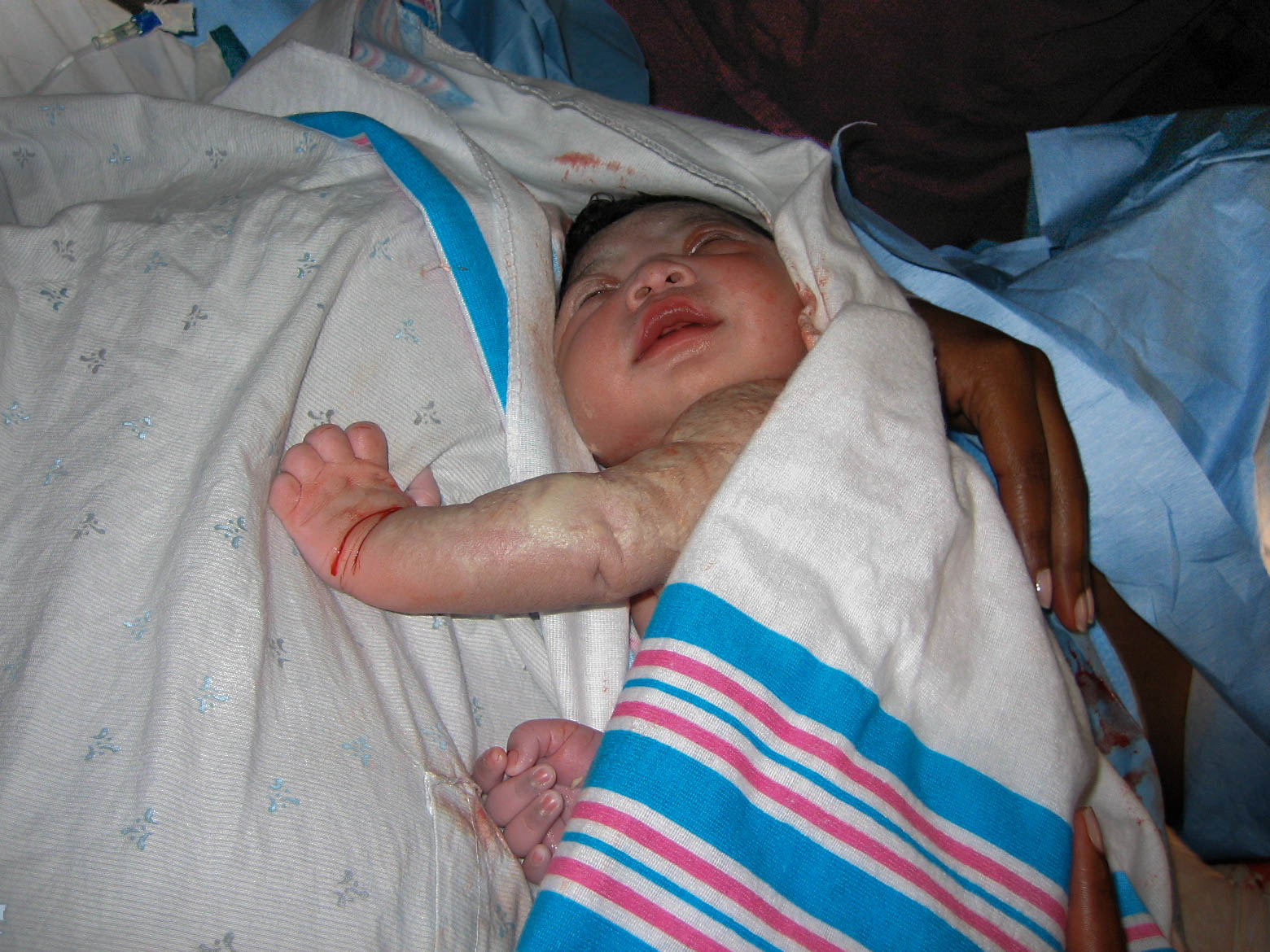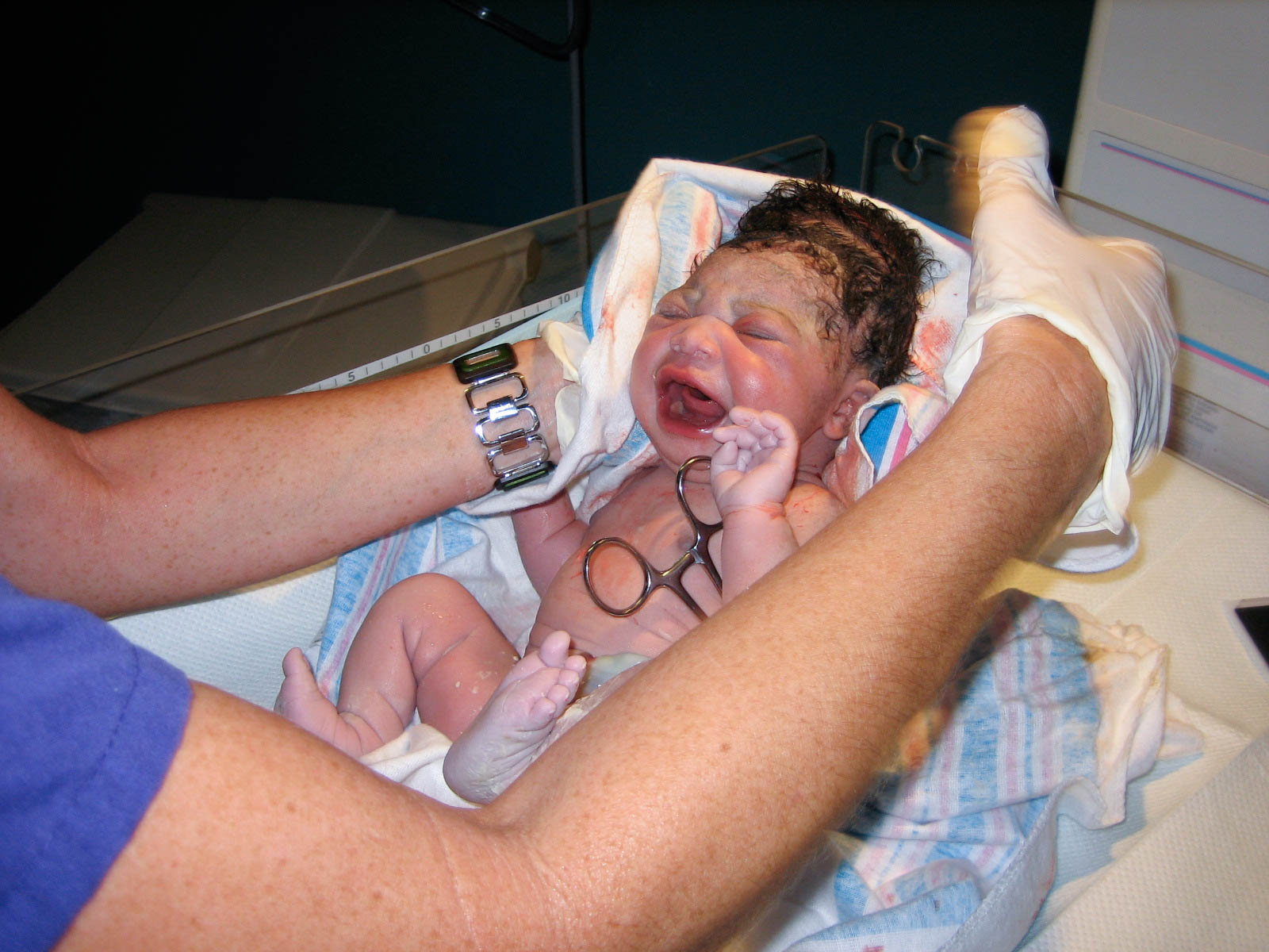 But as it turns out, Hannah wasn’t quite ready to pop out, waiting until 3:58 pm…over 12 hours later…to get her mom fully dilated. Just in time for the epidural to wear off, lol.